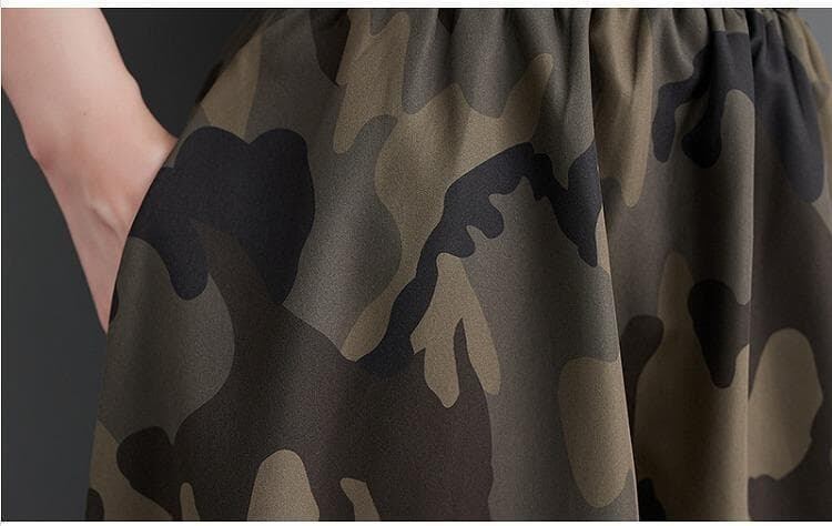 新品 大きいサイズ迷彩柄 Aライン ロングスカート ゆったり マキシ丈夏秋i