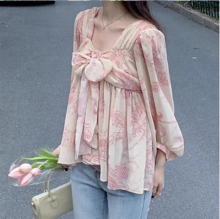 #大きいサイズ #ぽっちゃり #ゆったり #体型カバー #レディース #ブラウス #花柄 #ビッグリボン #トップス #フェミニン #20代 #30代 #40代 #50代 #新品 #春夏 #韓国ファッション
