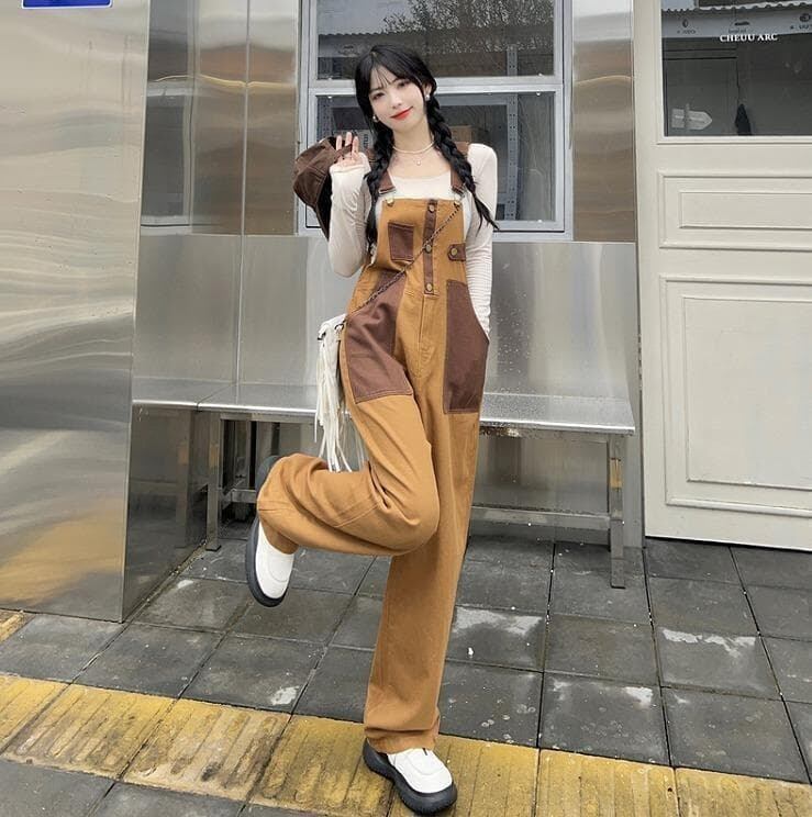 #大きいサイズ #新品 #オーバーオール #オールインワン #つなぎ #サロペット #ワイドパンツ #カジュアル #韓国ファッション #ブラウン #春服 #夏服 #秋服 #冬服 #レディース #体型カバー #2L #3L #4L