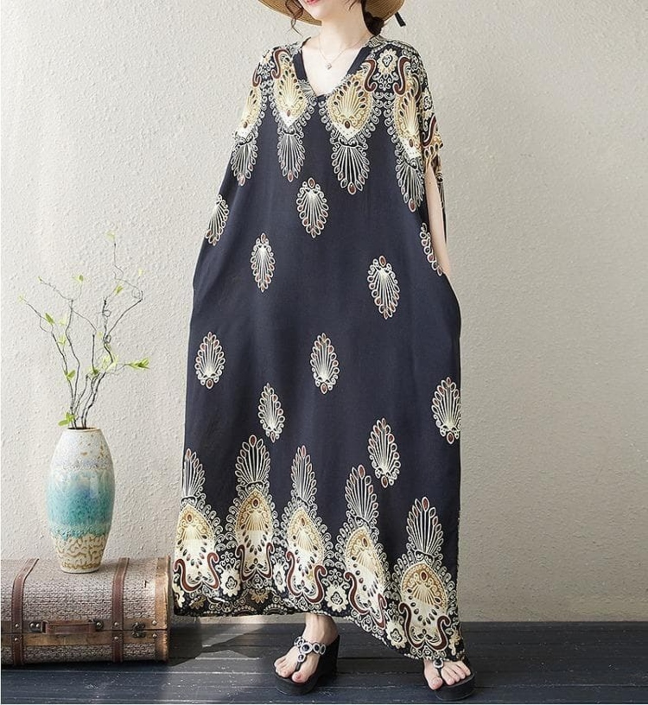 #新品 #大きいサイズ #ワンピース #マキシ丈 #エスニック #Vネック #体型カバー #ゆったり #リゾート #夏服 #旅行