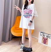 大きいサイズ トップス レース袖 レディース 春夏 新品 Tシャツ 五分袖 ピンク オーバーサイズ 肌見せ