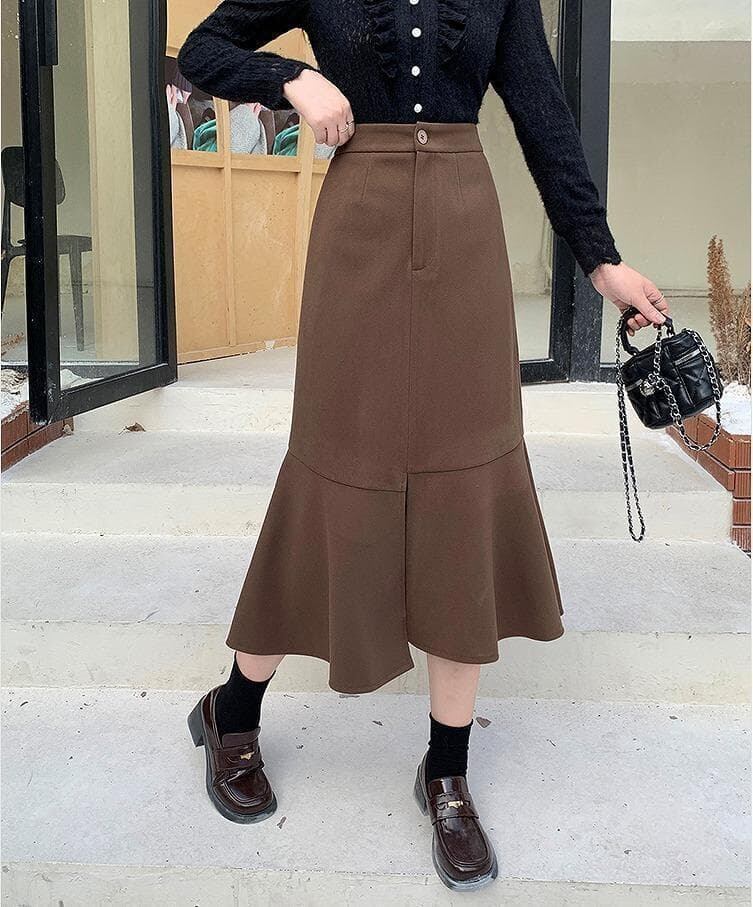 大きいサイズ レディース スカート ひざ丈 春 秋冬 新品 ブラウン ブラック