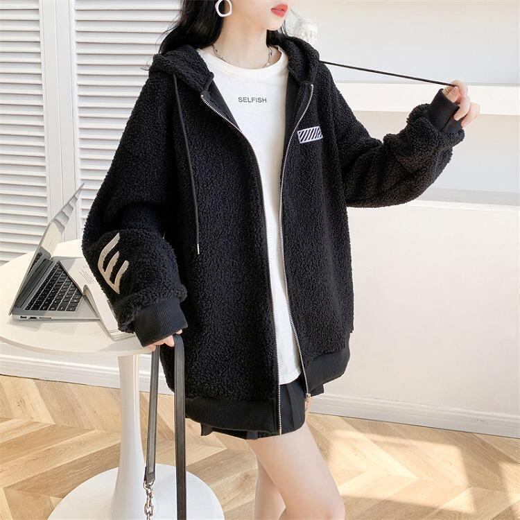 大きいサイズ レディース パーカー アウター ジップアップ 春 秋冬 新品 長袖 もこもこ ロゴ