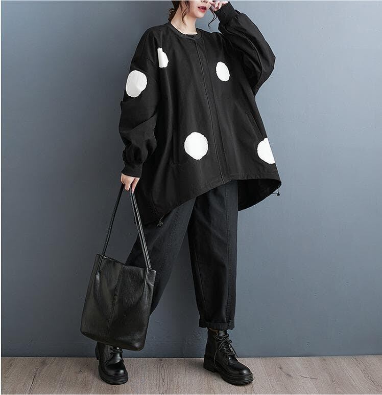 大きいサイズ レディース アウター コート ドット 春 秋冬 新品 長袖 ゆったり ジップアップ