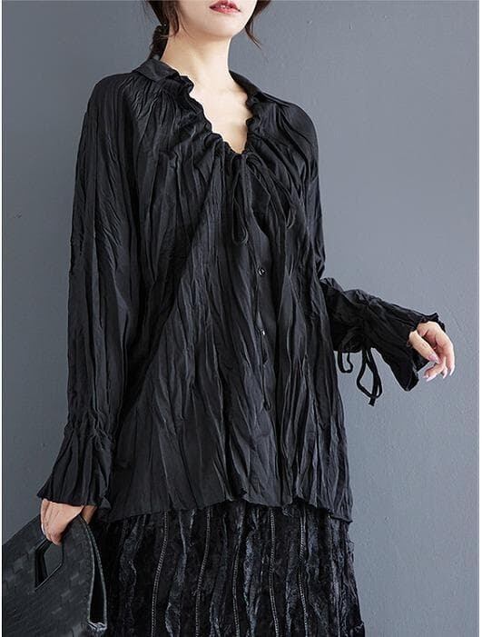 大きいサイズ トップス くしゅくしゅ レディース 秋冬 春 新品 長袖 ブラック シャツ ブラウス