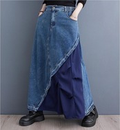 大きいサイズ レディース デニム スカート 異素材 ロング 春 秋冬 新品