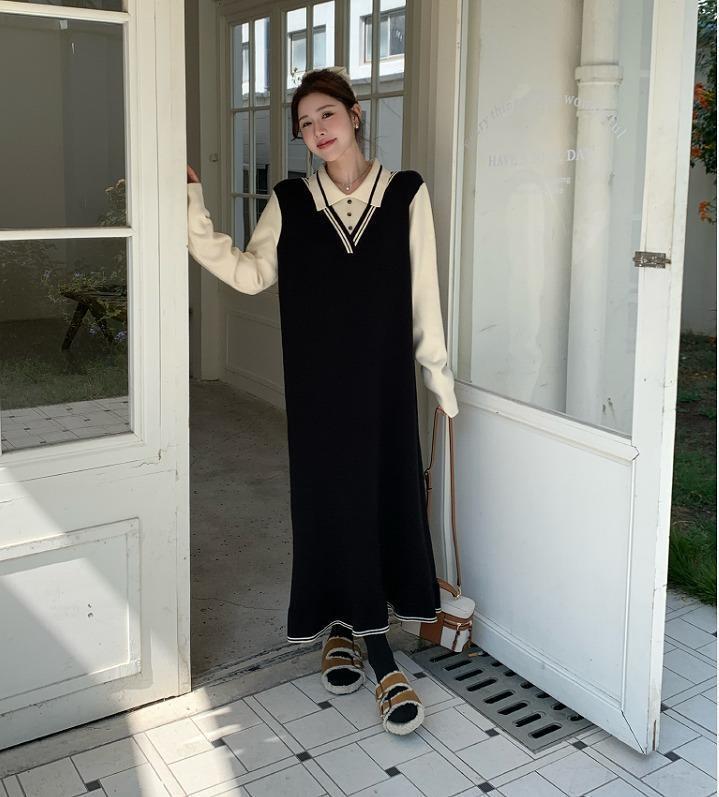 大きいサイズ 重ね着風 ワンピース ニット レディース 秋冬 春 新品 長袖 ロング ミモレ レイヤード