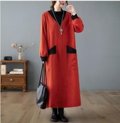 大きいサイズ レディース 秋 冬 ロング ワンピース 新品 長袖 春 レッド