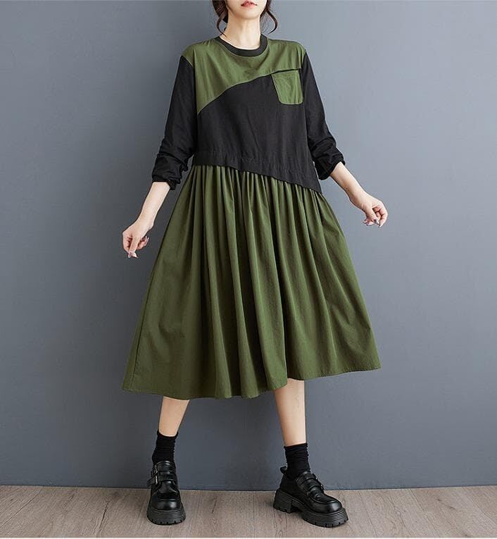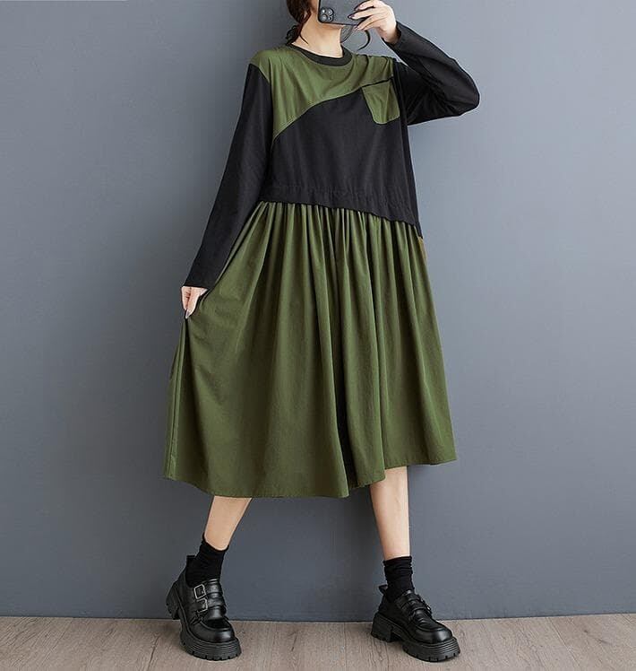 大きいサイズ ワンピース ひざ丈 グリーン レディース 秋冬 春 新品 長袖