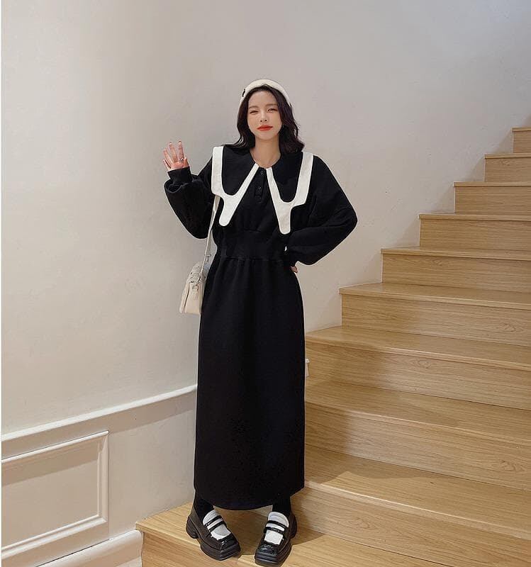 大きいサイズ レディース 秋冬 ロング ワンピース モノトーン 新品 長袖 春