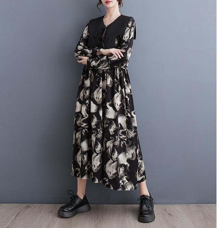 大きいサイズ レディース ロング ワンピース 襟付き 春 秋冬 韓国 長袖