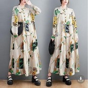 大きいサイズ レディース マキシ ワンピース ロング 春 秋冬 新品 長袖 ゆったり シャツ
