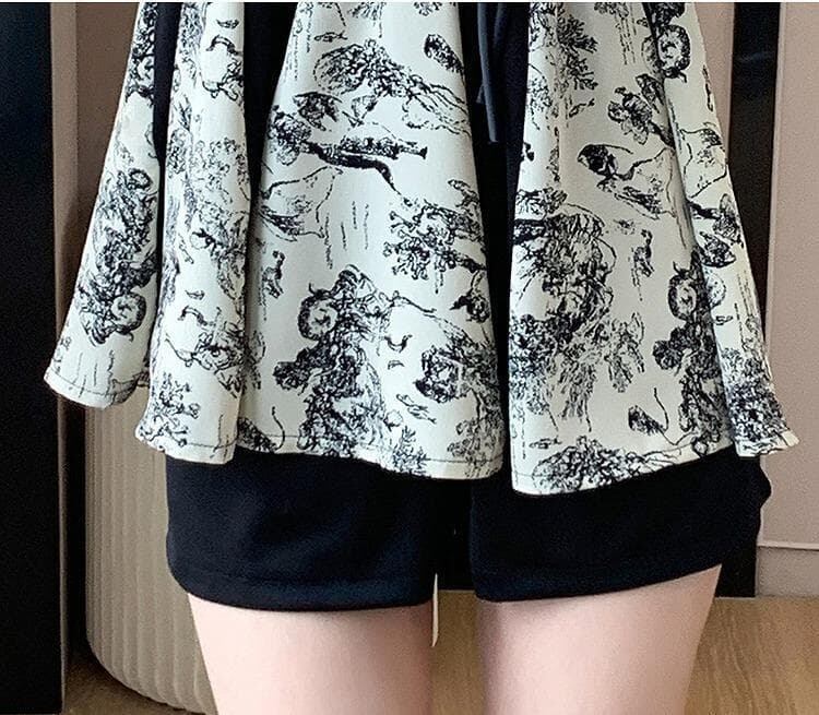 新品大きいサイズ柄物 半袖トップス ショートパンツ春夏セットアップ