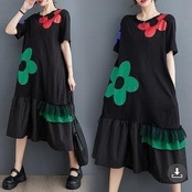 個性派デザイン Aラインワンピース 大きいサイズ 新品春夏半袖花柄レディース