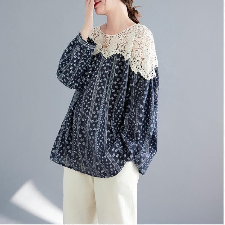 新品 大きいサイズ 長袖 花柄レースブラウス ゆったり 体型カバー春秋