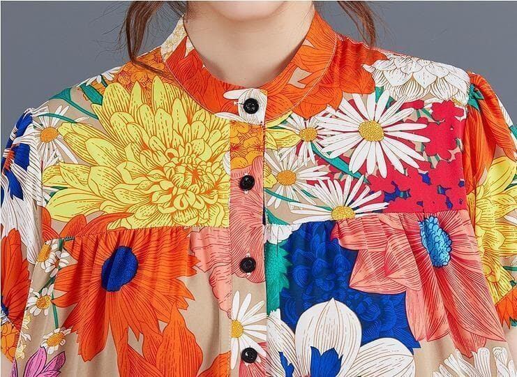 新品 大きいサイズ半袖ティアード ロングワンピース カラフル 花柄夏物