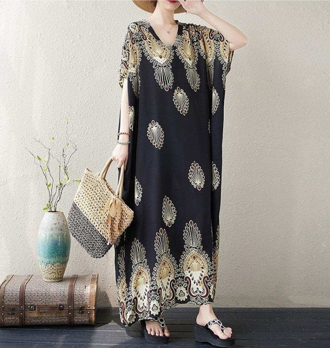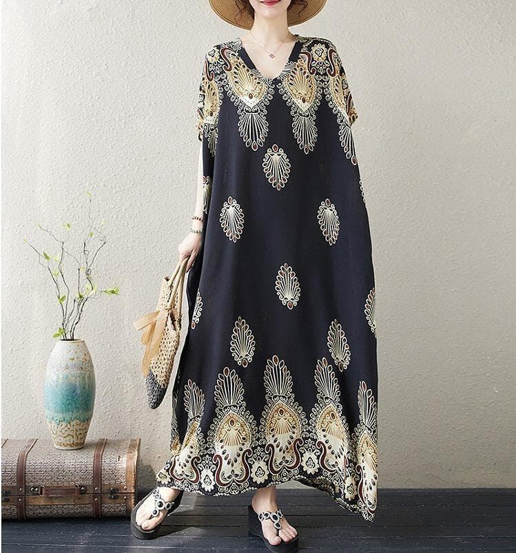 #新品 #大きいサイズ #ワンピース #マキシ丈 #エスニック #Vネック #体型カバー #ゆったり #リゾート #夏服 #旅行