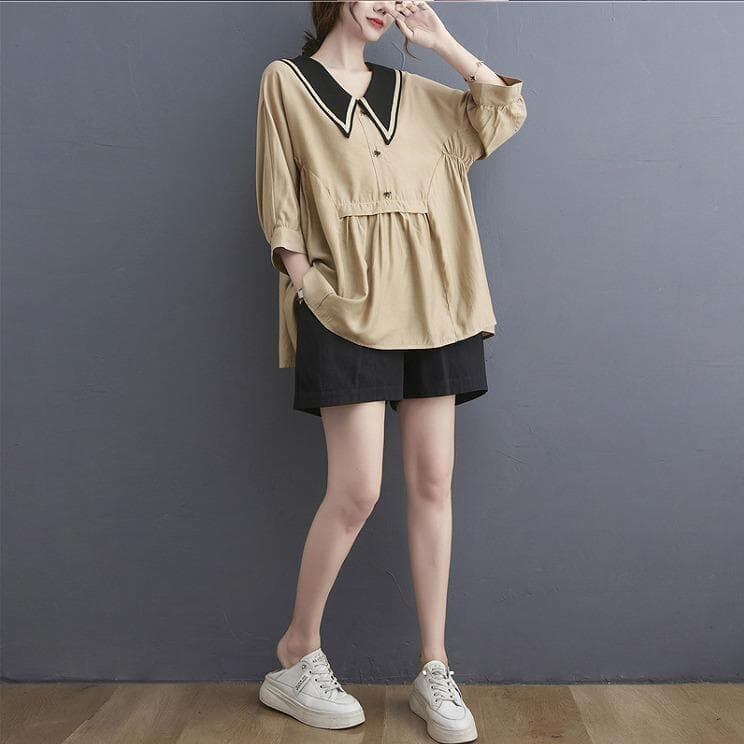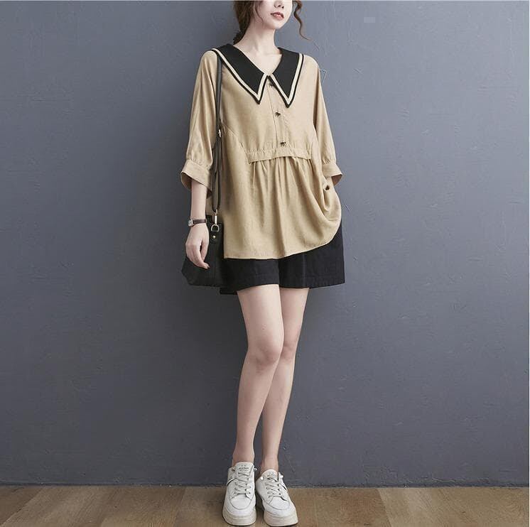 #セーラーカラー #チュニック #ブラウス #ベージュトップス #体型カバー #大人可愛い #ナチュラルコーデ #春夏秋
