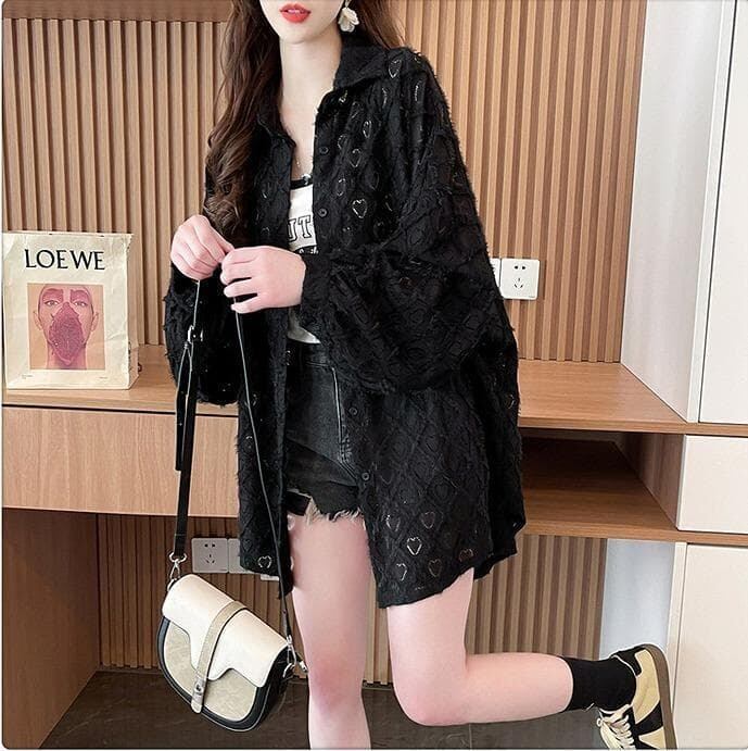 トップス シアー ハート柄 大きいサイズ レディース 春夏 秋 新品 長袖