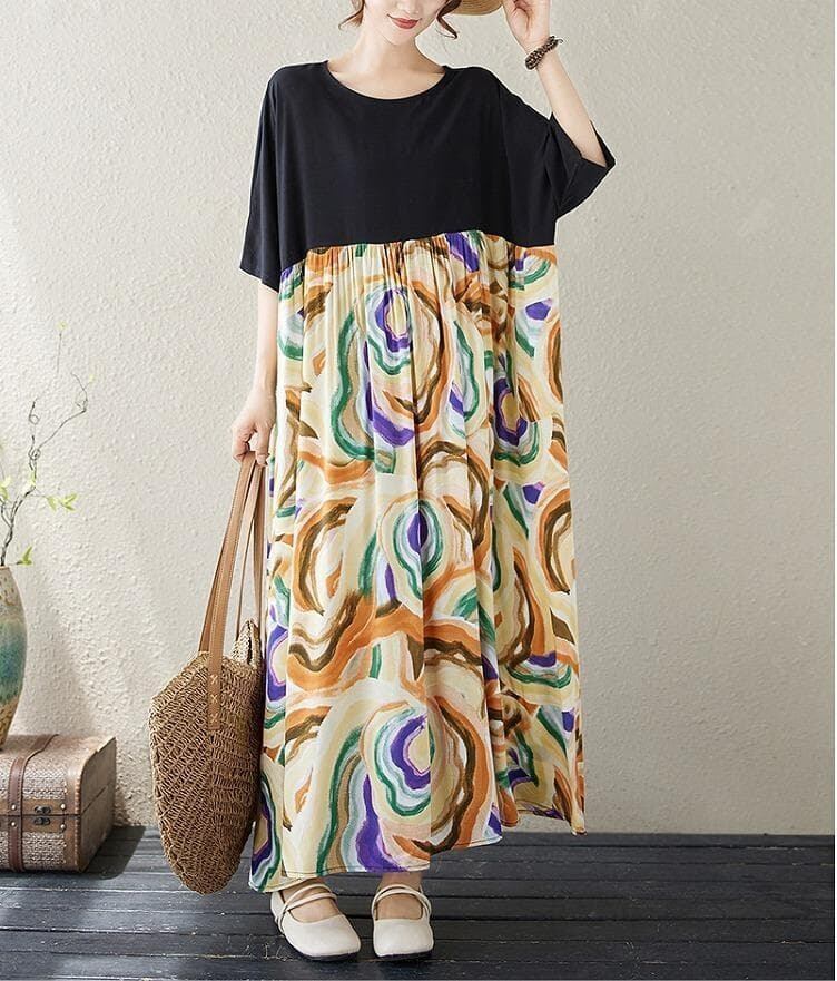 大きいサイズ レディース ロング ワンピース 春夏 秋 新品 半袖 ゆったり