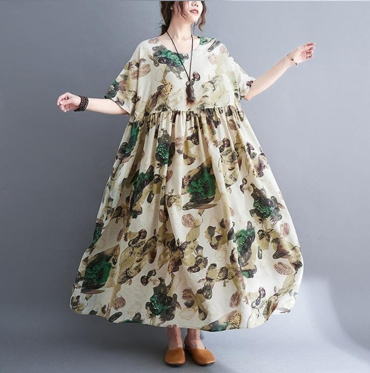 大きいサイズ レディース 春 夏 ロング ワンピース 新品 半袖 秋