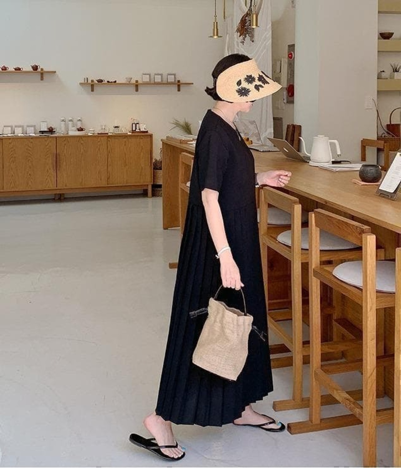 大きいサイズ レディース ワンピース プリーツ ロング 春夏 秋 新品 半袖