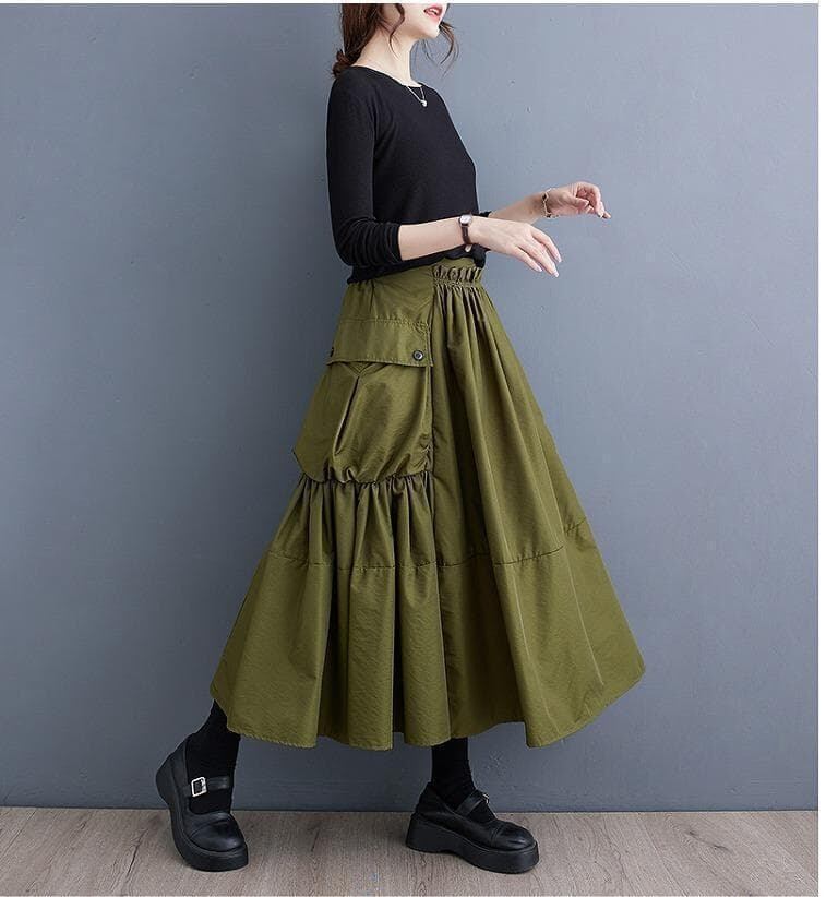 大きいサイズ レディース スカート カーキ 春 秋冬 新品