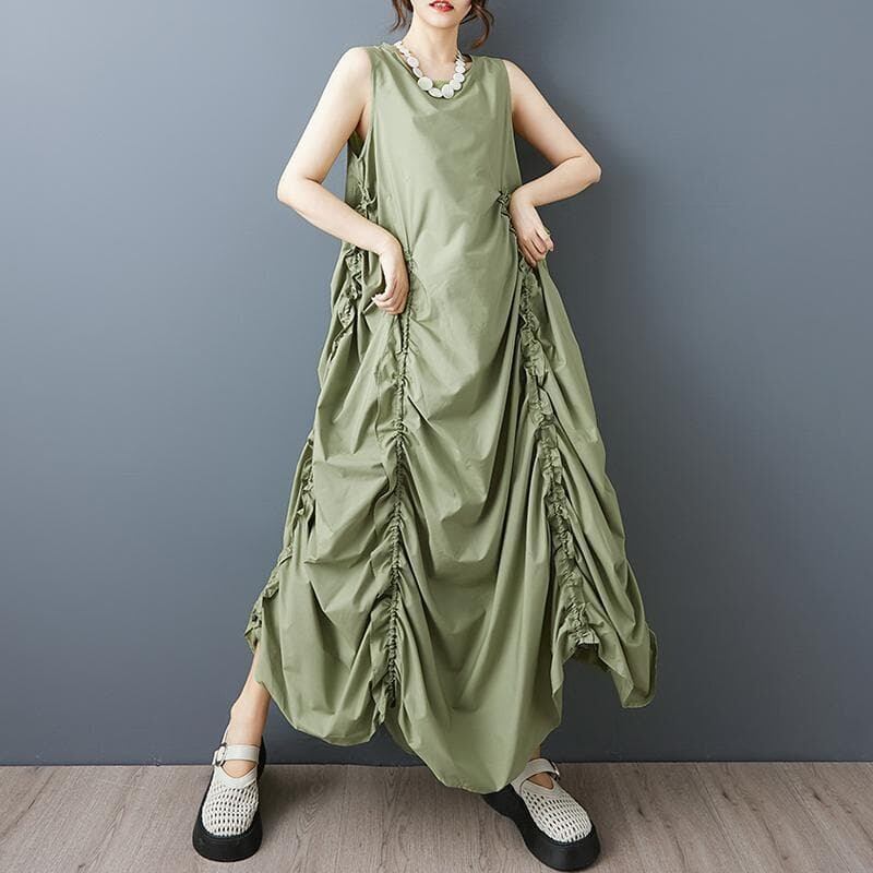 大きいサイズ ノースリーブ ワンピース レディース ドロスト 春夏 新品 ロング くしゅくしゅ