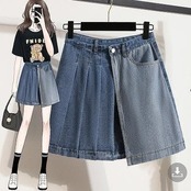 大きいサイズ レディース ミニスカート デニム プリーツ 新品