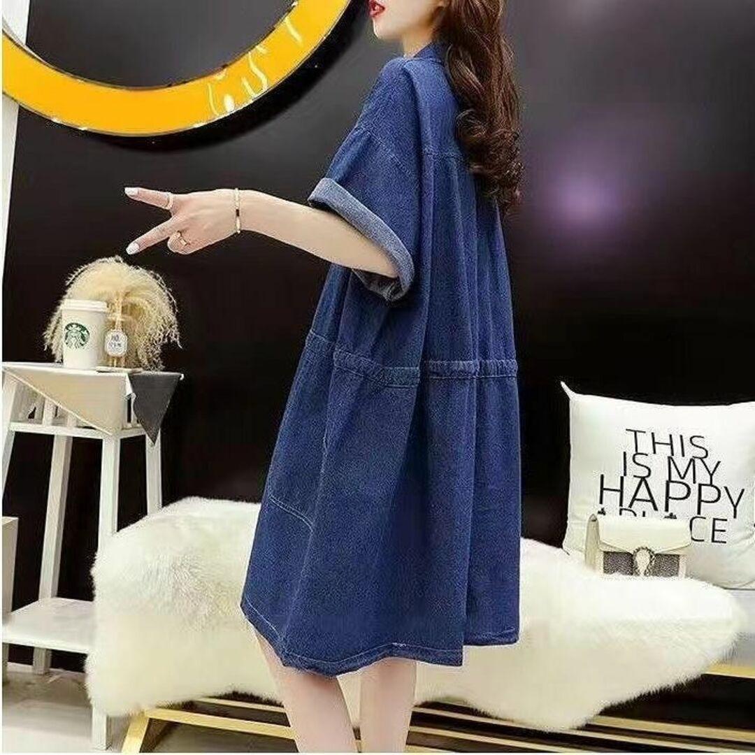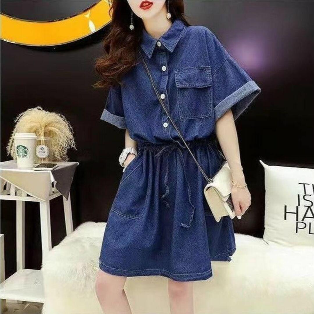 【大きいサイズ】 レディース デニム ワンピース 春夏 秋 新品 半袖 小さいサイズ ゆったり
