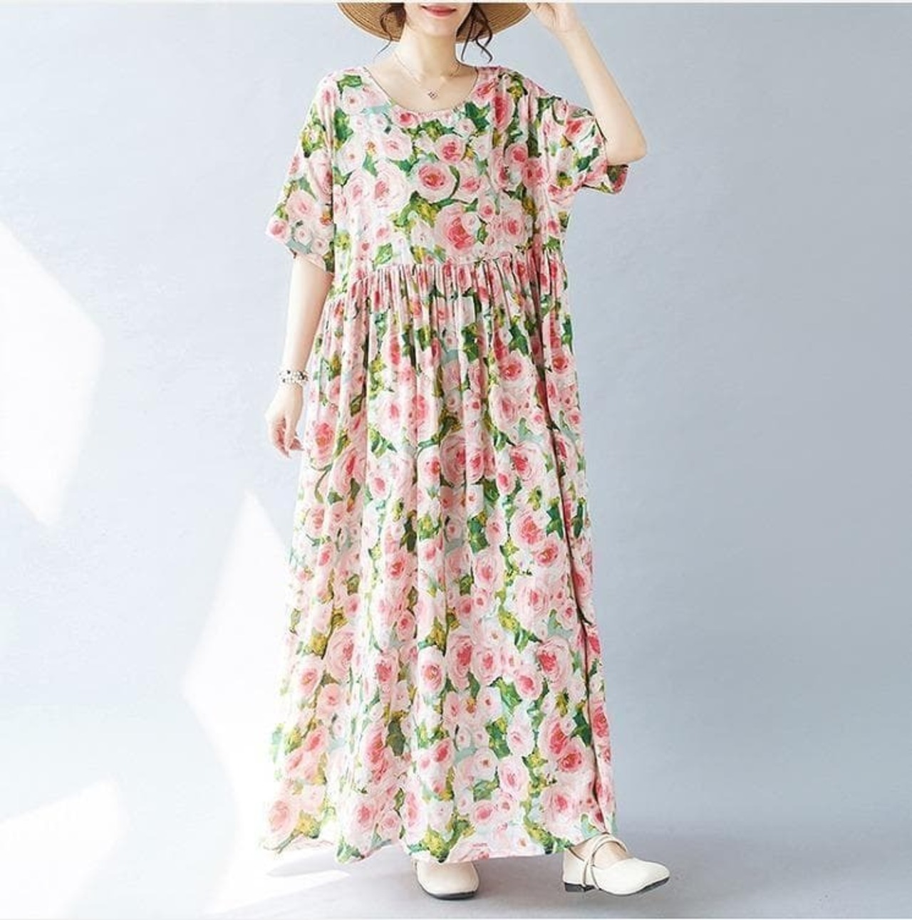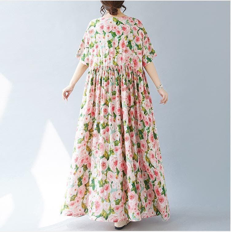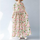 大きいサイズ レディース ロング ワンピース 春夏 秋 新品 半袖 花柄