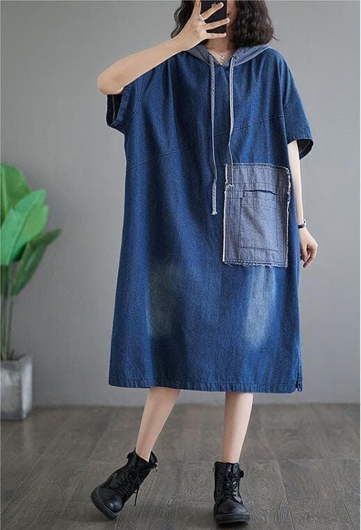 【大きいサイズ】 レディース デニム ワンピース 春夏 秋 新品 半袖 パーカー フード