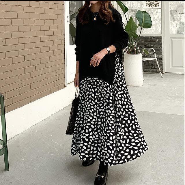 大きいサイズ レディース ワンピース ドッキング ロング 長袖