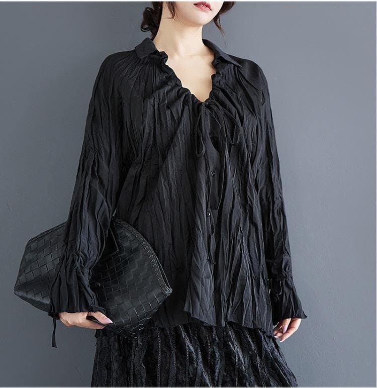 大きいサイズ トップス くしゅくしゅ レディース 秋冬 春 新品 長袖 ブラック シャツ ブラウス