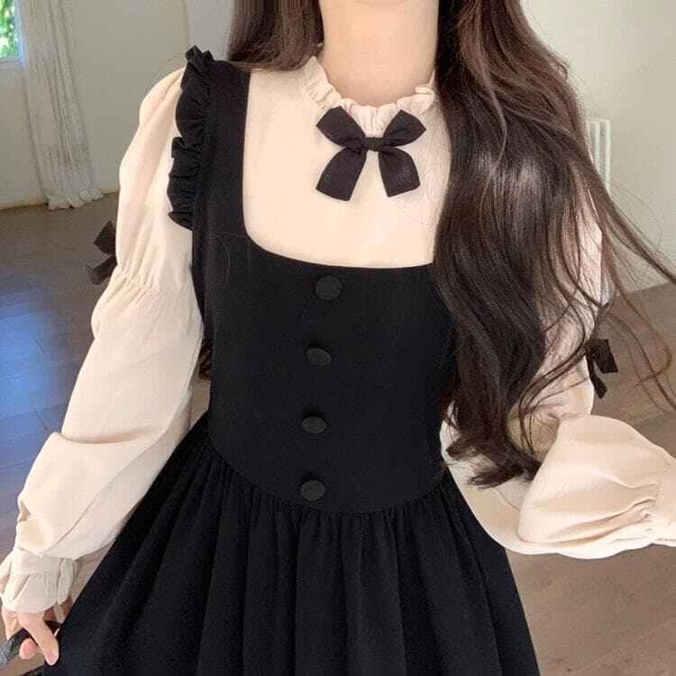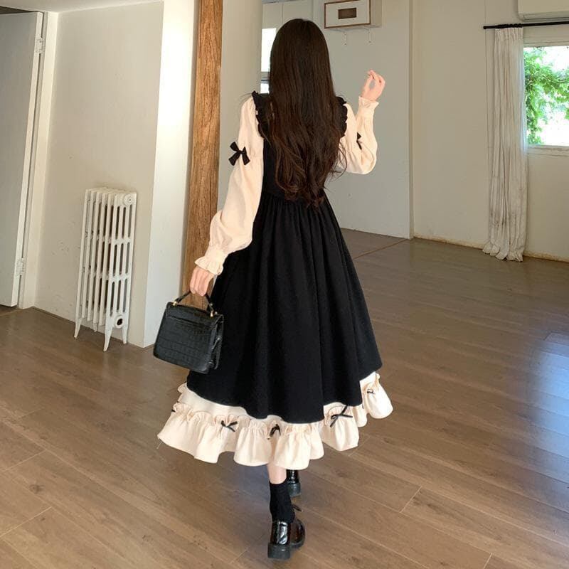大きいサイズ ワンピース 2WAY レディース 秋冬 春 新品 長袖 サロペット リボン 2点セット 重ね着 ガーリー