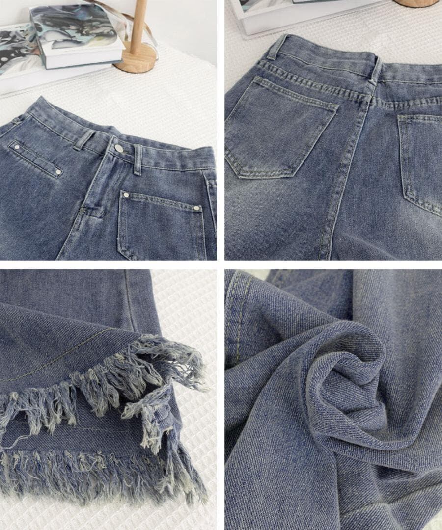 レディース ハイウエストロングパンツ 体形カバー 美脚脚長ボトムス 韓国風ジーンズ カジュアル レトロデニムバギーパンツ