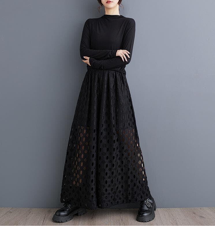大きいサイズ スカート レース シアー レディース ロング 新品 ブラック 透け
