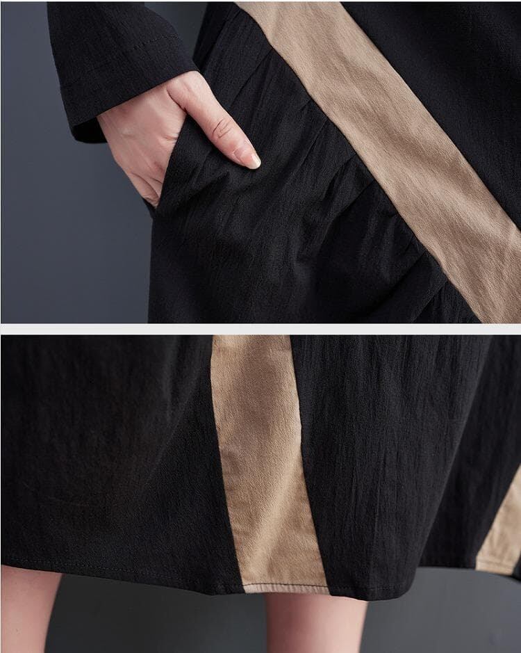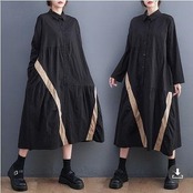 新品大きいサイズゆったりロングワンピース長袖秋冬シャツブラックレディース