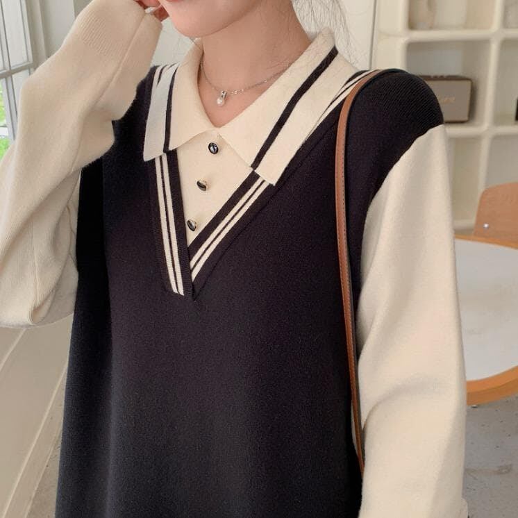 大きいサイズ 重ね着風 ワンピース ニット レディース 秋冬 春 新品 長袖