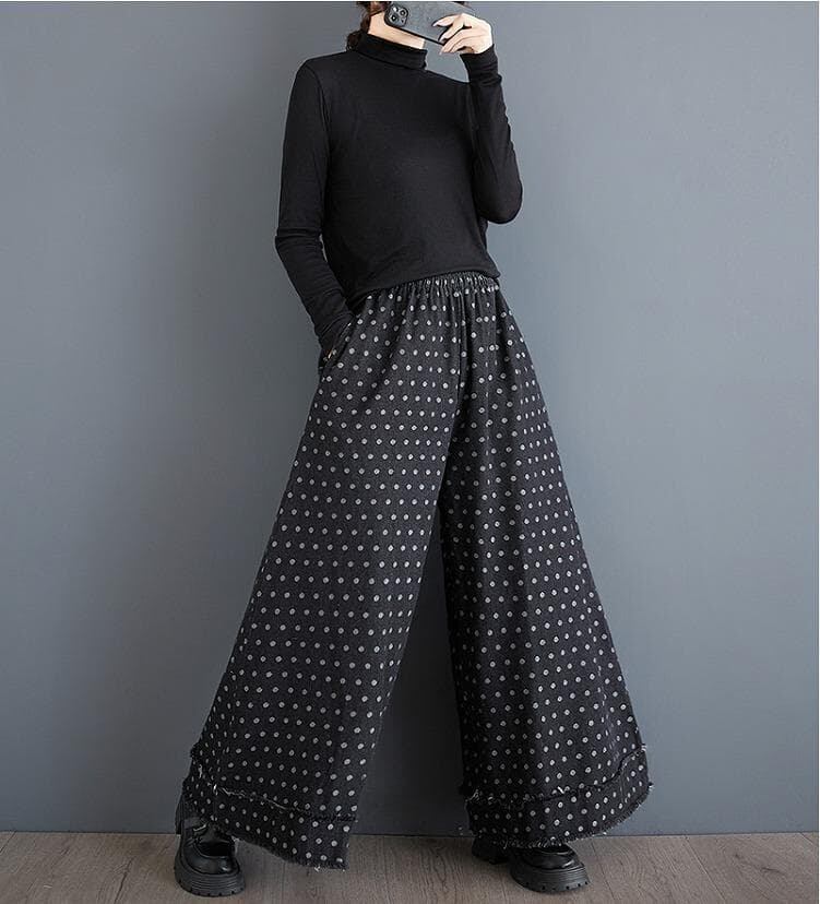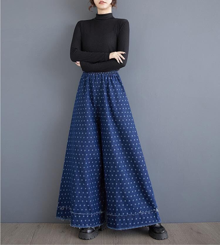 大きいサイズ デニム パンツ ドット 可愛い レディース 秋冬 春 新品 ワイドパンツ ガウチョパンツ