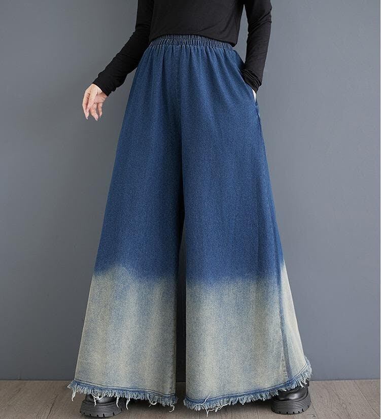 大きいサイズ デニム ワイドパンツ カットオフ レディース 秋冬 春 新品