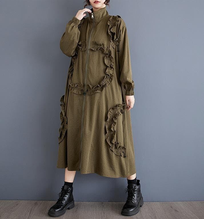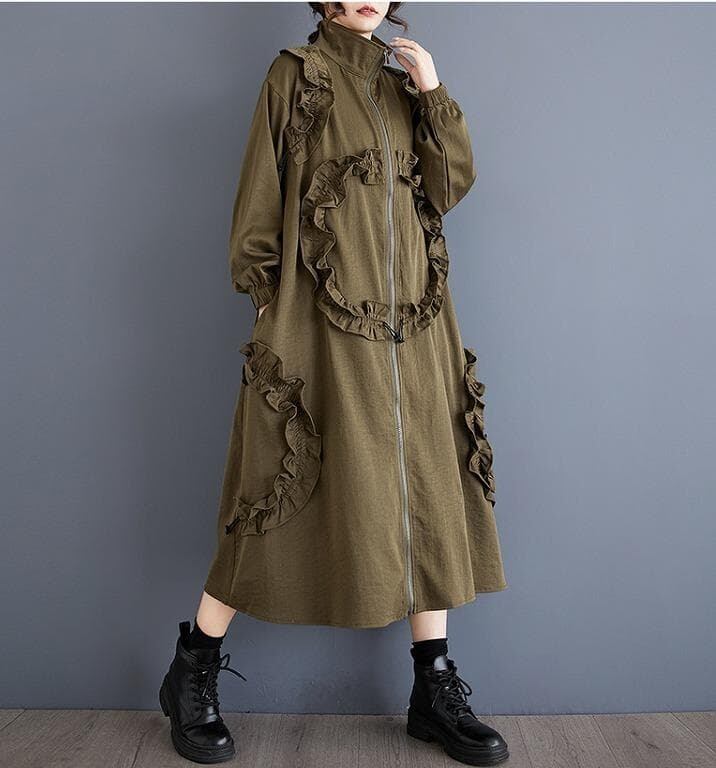 大きいサイズ コート アウター カーキ レディース 秋冬 春 新品 長袖 モード系