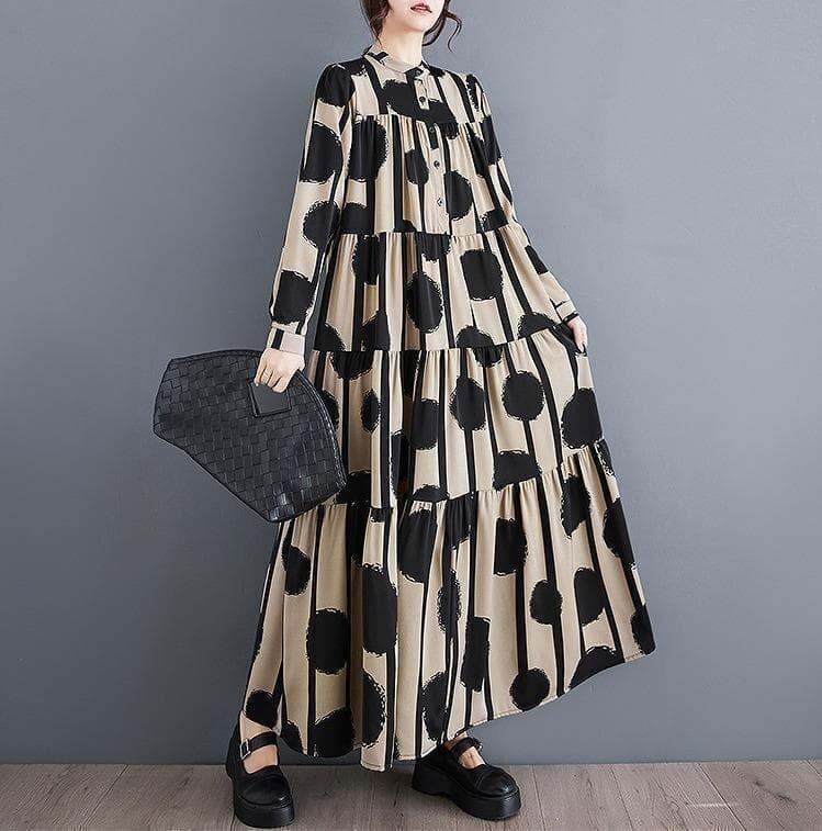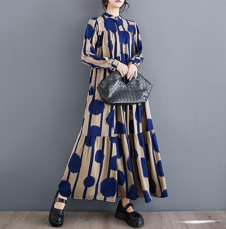 【大きいサイズ】 レディース ロング ワンピース 新品 長袖 シャツ ドット