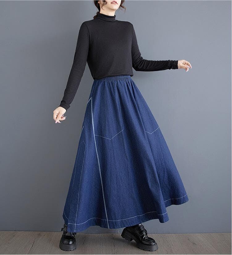 大きいサイズ デニム スカート ロング レディース 秋冬 春 ミモレ 新品