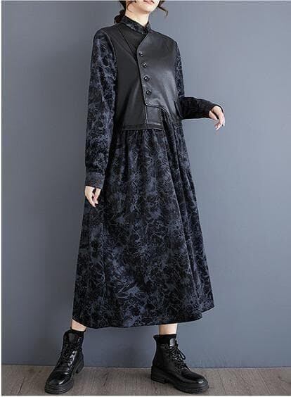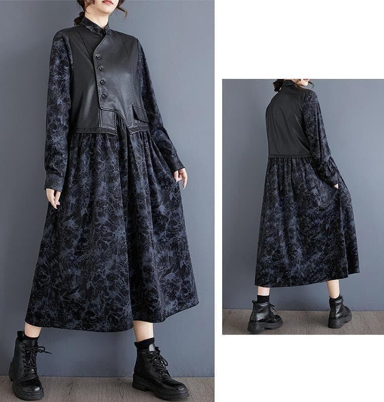 大きいサイズ ワンピース レザー 異素材 レディース 秋冬 長袖 エコレザー フェイクレザー 新品