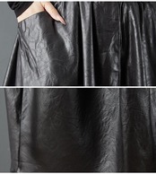 柔らかく光沢のあるブラック素材で、体型をすっきり見せながらおしゃれにカバーできます。Vネックベストと不規則なデザインのスカートが絶妙なバランスで、大人の余裕を感じる一枚。軽くて動きやすく、ニットやタートルを重ねれば冬も快適に着られます。