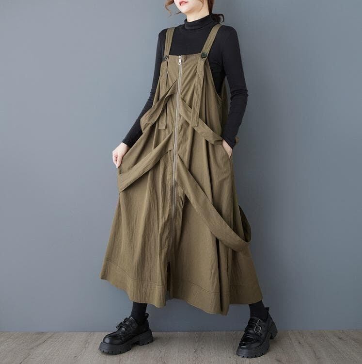 大きいサイズ サロペット カーキ ワンピースレディース 秋冬 春 新品 個性