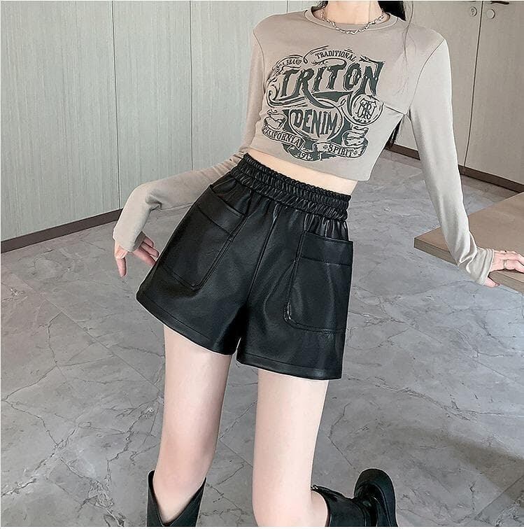 秋冬のトレンドをしっかり押さえた、ゆったりシルエットのPUレザーショートパンツです。光沢感のあるフェイクレザーで、一気にクールでモードなスタイルが完成します。ウエストはゴムで穿きやすく、裾に向かって広がるデザインが、太もも周りを自然にカバーしてくれます。