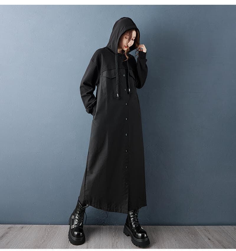 #新品 #大きいサイズ #ワンピース #パーカー #秋服 #ゆったり #体型カバー #黒 #ダークスタイル #異素材MIX