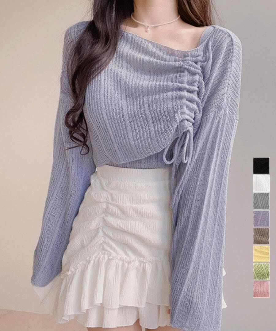 ドローストリング ニットアンサンブル トップス 2点セット 新品 春夏 長袖5